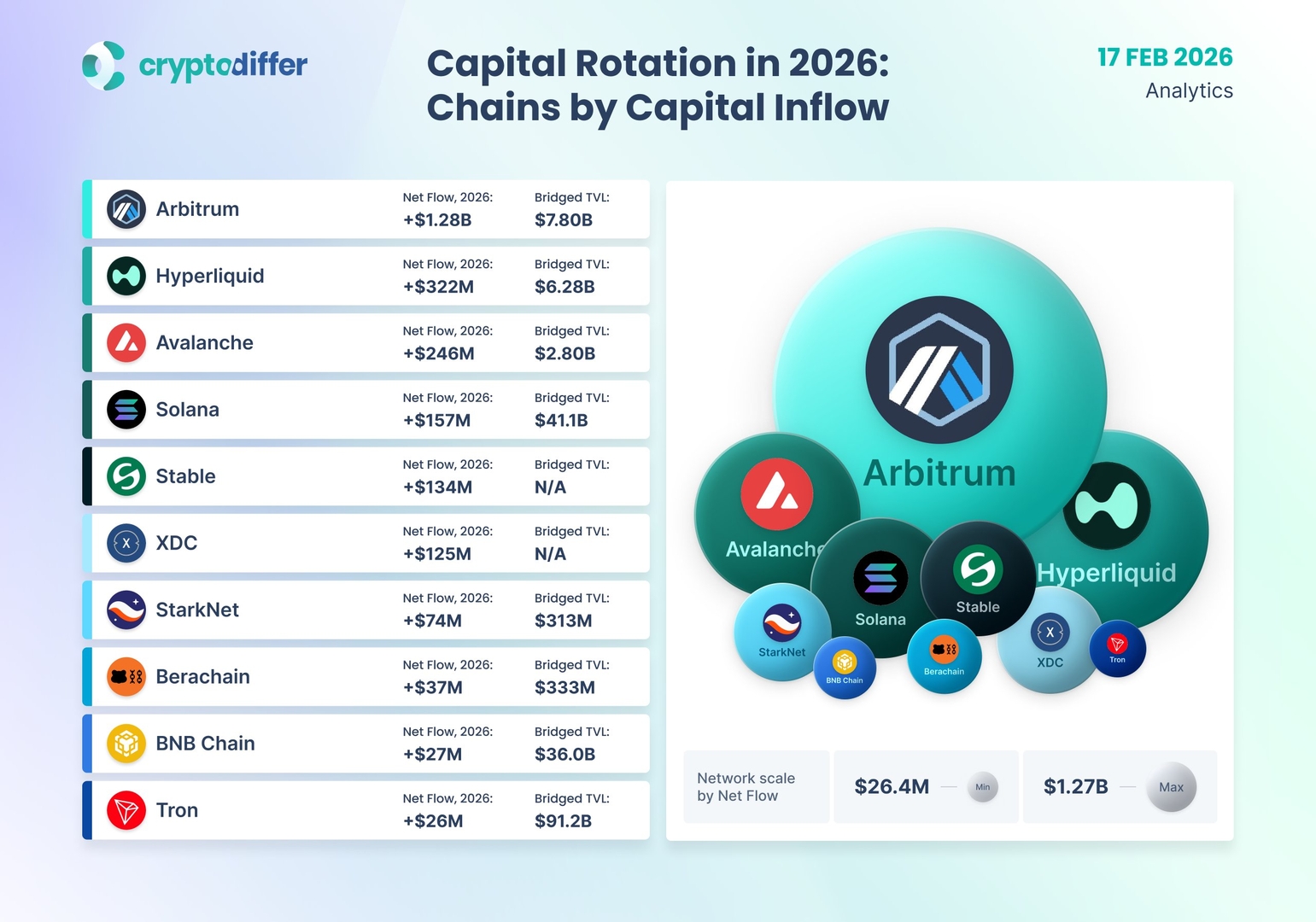 Ротация капитала в 2026 году: блокчейны по притоку капитала