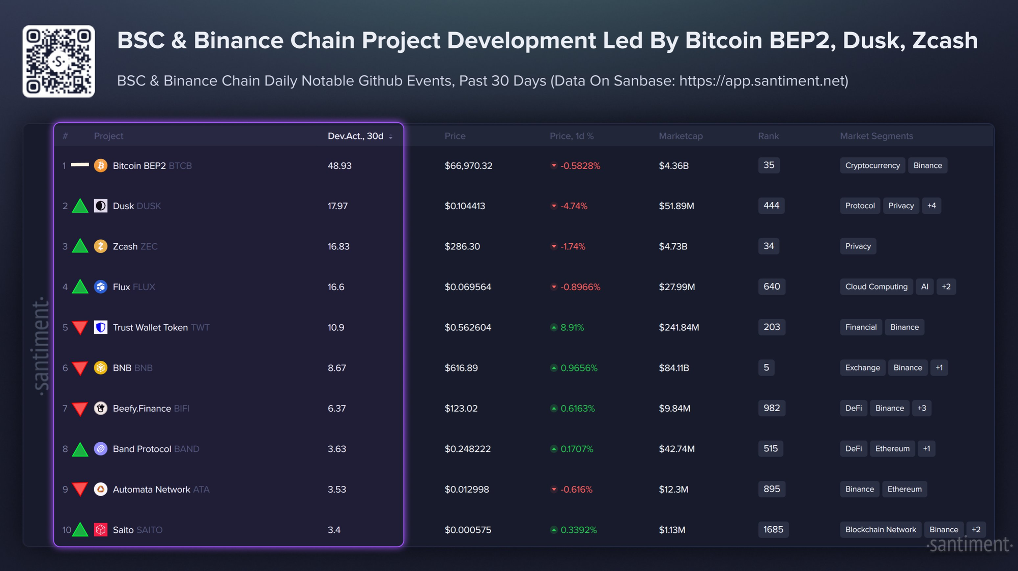 ➡️ 1) $BTCB 🥇 📈 2) $DUSK 🥈 📈 3) $ZEC 🥉 📈 4) $FLUX 📉 5) $TWT 📉 6) $BNB 📉 7) $BIFI 📈 8) $BAND 📉 9) $ATA 📈 10) $SAITO