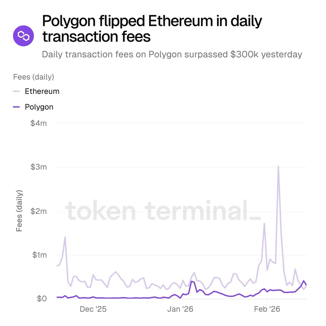 🔥 Polygon обогнал Ethereum по суточным комиссиям за транзакции, превысив отметку в 300 тысяч долларов за токен.