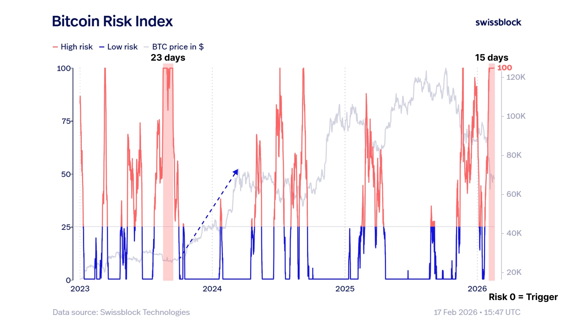 История повторяется. 15 дней подряд экстремального риска для биткоина. В последний раз подобная серия (23 дня в 2023 году) сигнализировала о том, что рынок достиг своего дна. Если курс $BTC развернётся, то $ETH взлетит, когда начнётся ротация в сторону риска.