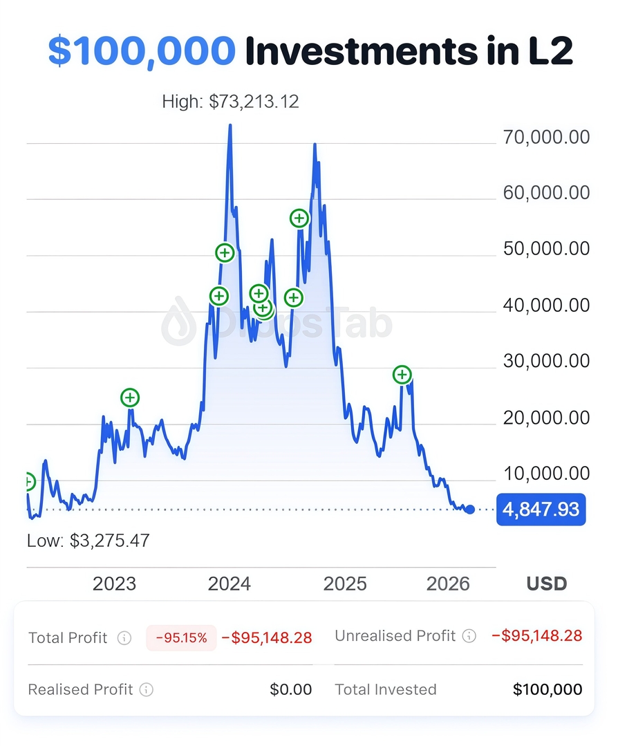 🩸100 000 долларов, вложенные в каждый крупный Layer 2 на момент запуска, сейчас стоят 4847 долларов. | |