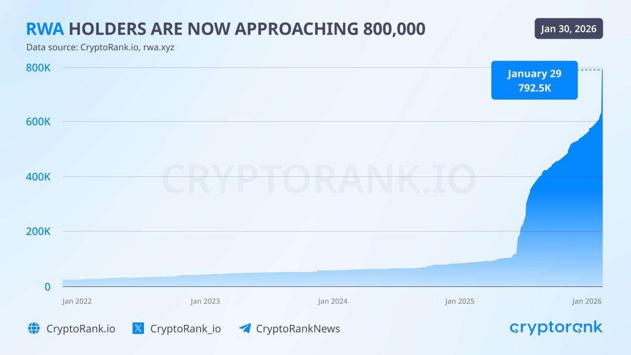 За последний год число держателей RWA выросло почти в 10 раз и приблизилось к 800 000, а вскоре может превысить 1 миллион.