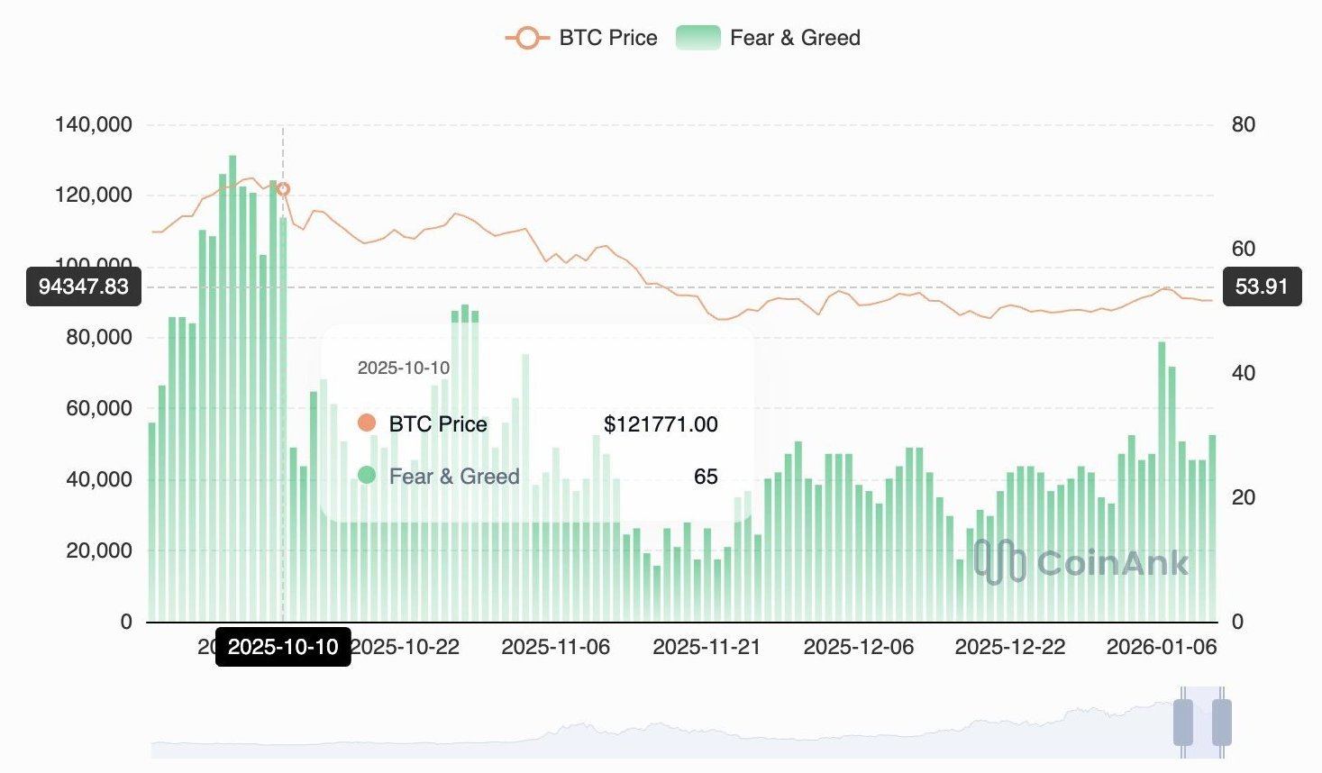 С момента события ликвидации 10 октября Индекс страха и жадности в среднем составлял 30 или ниже, демонстрируя устойчивое настроение, обусловленное страхом, на протяжении последних трех месяцев.