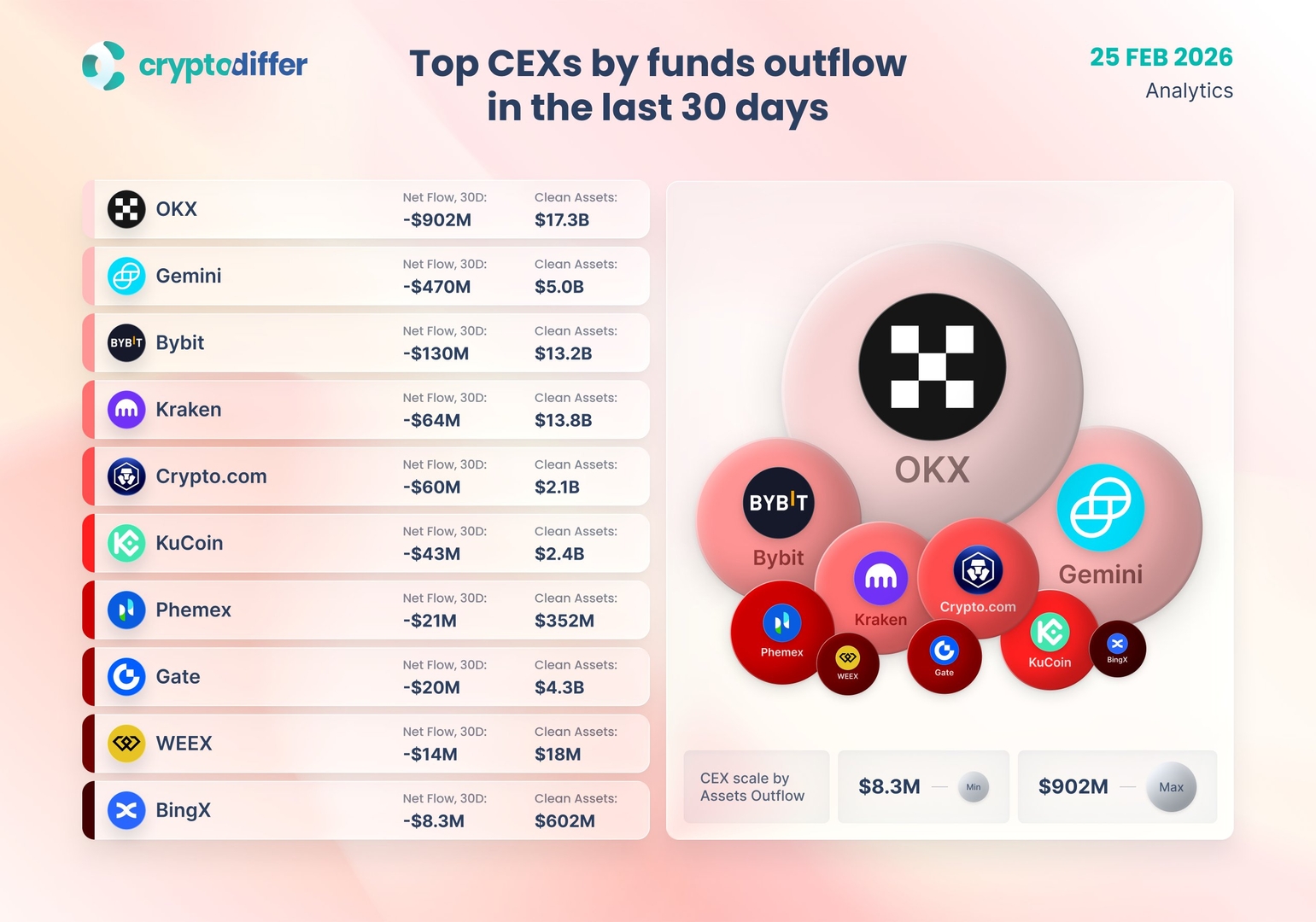 Крупнейшие централизованные биржи по объему оттока средств за последние 30 дней | |