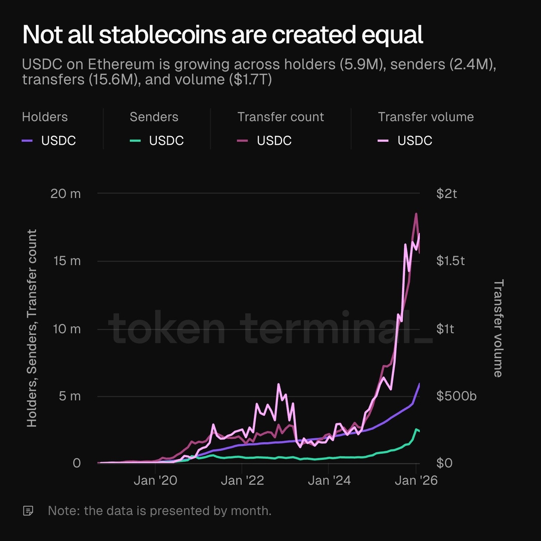 ⚡️ USDC обогнал Tether по объему переводов, поскольку объем транзакций со стейблкоином достиг рекордных 1,8 трлн долларов.