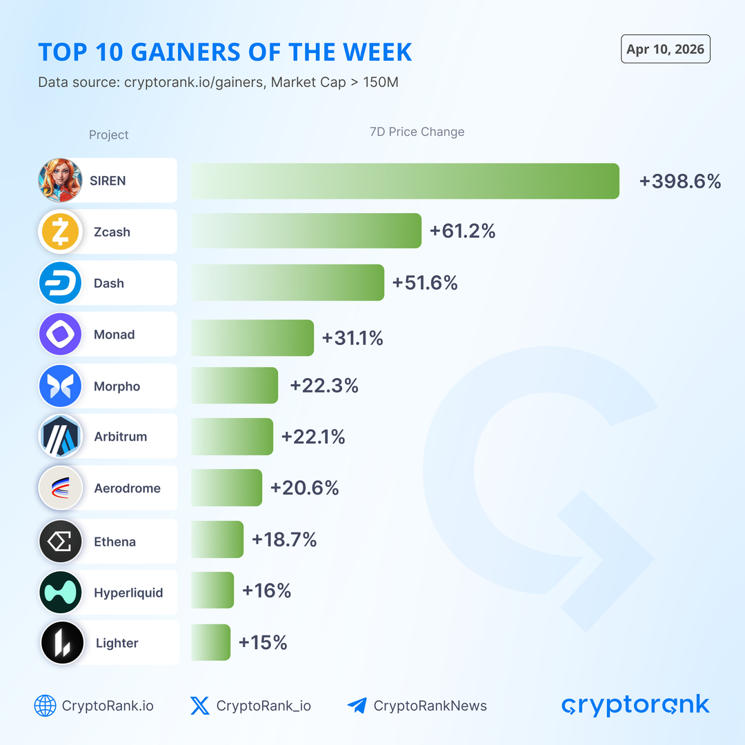 11:35 Топ-10 криптовалют, показавших рост за 7 дней | |