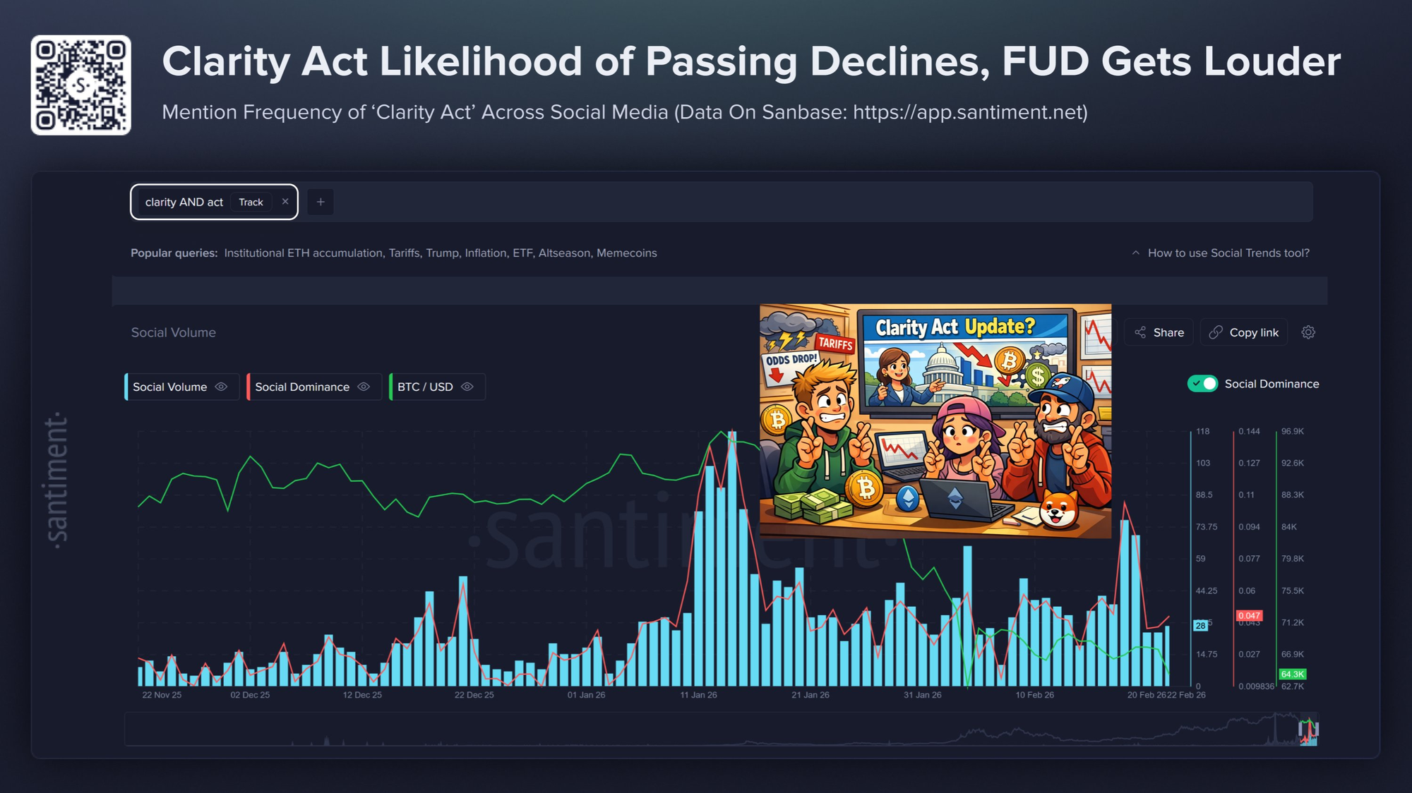 😰 Вероятность принятия Закона о прозрачности в сфере цифровых активов (Clarity Act) по версии Polymarket снизилась с 72% до 42%. Многие криптоинвесторы и компании по-прежнему рассчитывают, что этот закон установит чёткие правила регулирования цифровых активов, в том числе определит, какие государственные органы будут контролировать те или иные виды токенов и как будут регулироваться стейблкоины. |