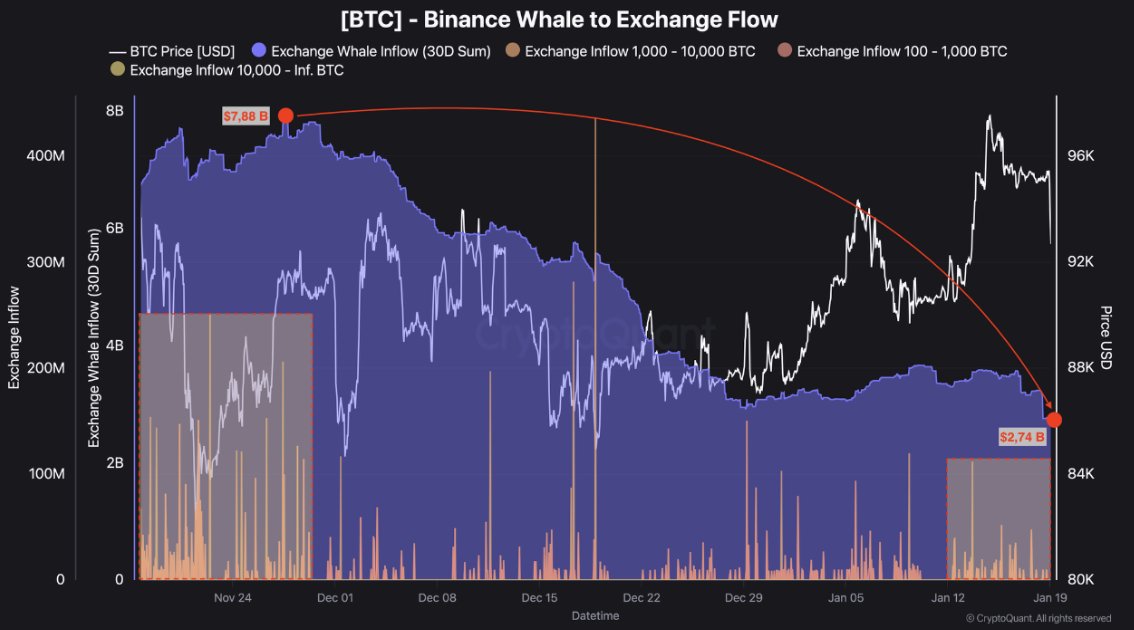 Текущие данные показывают явное снижение количества транзакций китов, а именно их потоков $BTC на биржи. |