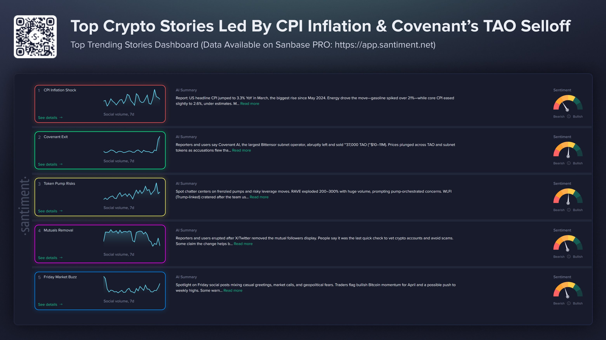 🌎 Пятничные рыночные сводки: в центре внимания пятничные посты в социальных сетях, в которых смешиваются неформальные приветствия, рыночные прогнозы и геополитические опасения. Трейдеры отмечают бычий тренд биткоина в апреле и возможный рост до недельных максимумов. Некоторые предупреждают о пятничных геополитических новостях (об Иране), которые могут спровоцировать рост цен на нефть и падение акций. Многие посты — это просто сообщения о настроениях в сообществе и напоминания о событиях без явного рыночного подтекста.