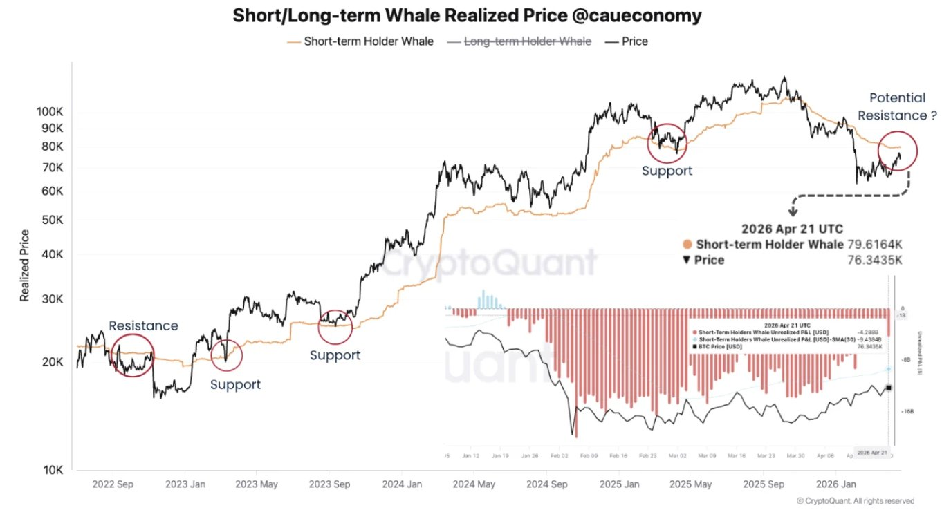 Поскольку цена биткоина колеблется в районе 76 000–80 000 долларов, и инвесторы в биткоин-ETF, и краткосрочные «киты» находятся на уровне своих ценовых ориентиров или близко к нему. Для этих групп 80 000 долларов — это не просто круглая сумма, а психологический и финансовый порог, за которым начинается облегчение, а не продолжение убытков.